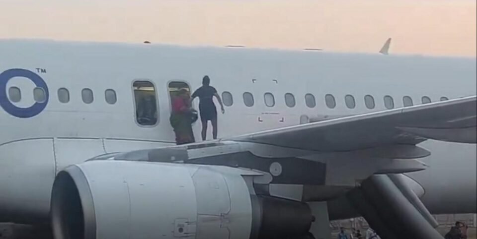 #WATCH | Passengers of the IndiGo flight 6E2211 operating from Delhi to Varanasi were evacuated through the emergency door after a bomb threat was reported on the flight. All passengers are safe, flight is being inspected.