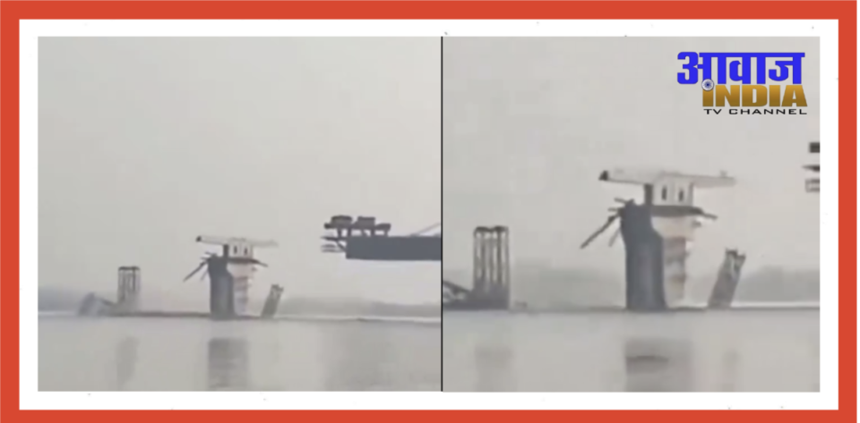 Super structure of the bridge being constructed on the Ganga river between Sultanganj and Agwani in Bhagalpur at a cost of 1710 crores collapsed.Last year also a part of this bridge had collapsed pic.twitter.com/N8bJ91nJ8O